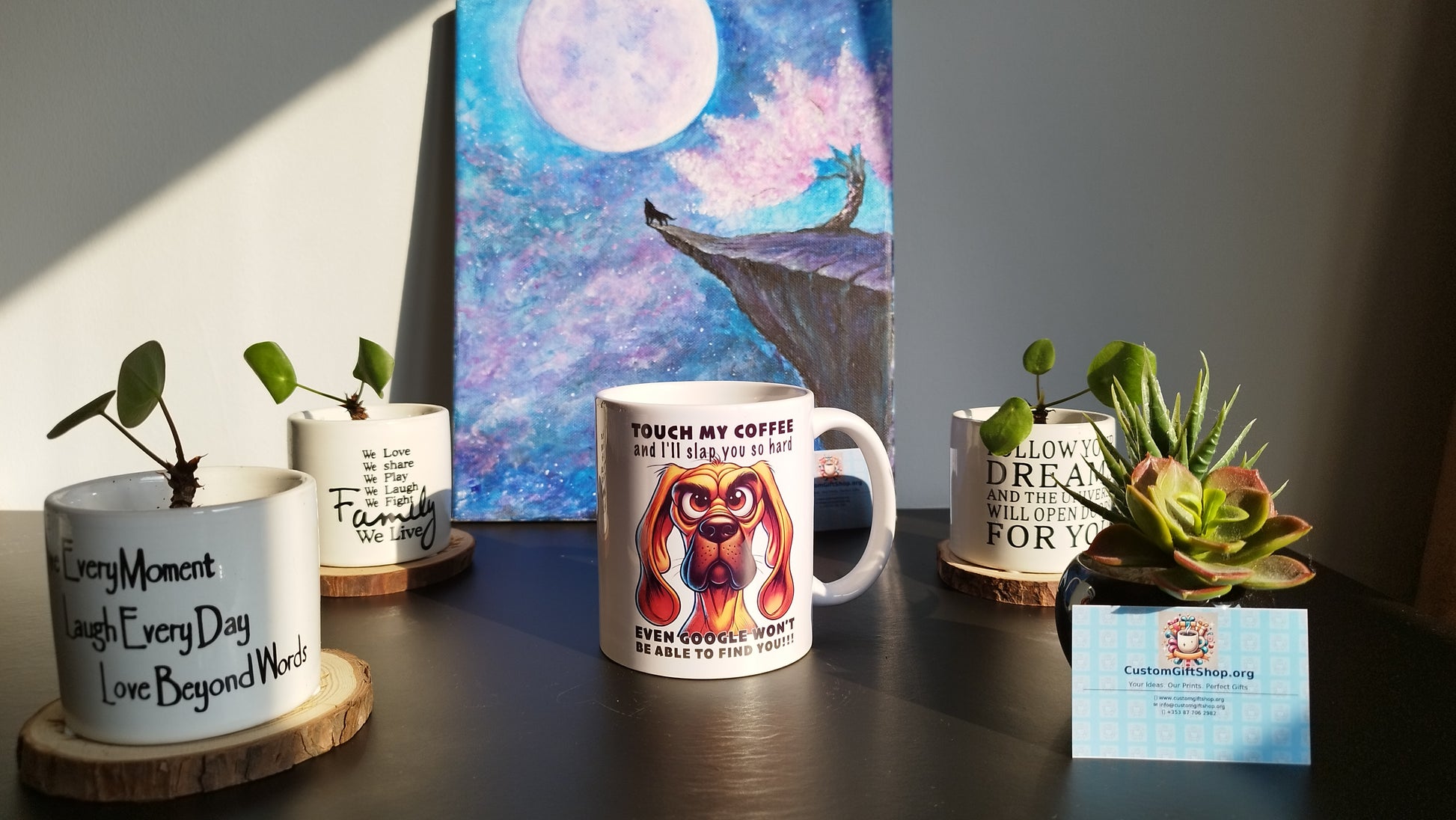 Start your day with a mug that’s uniquely yours ☕✨. Our custom mugs are designed to showcase your favorite designs, logos, or photos in vivid, long-lasting print. Whether for personal use, as a gift, or for your brand, these mugs are both practical and stylish.